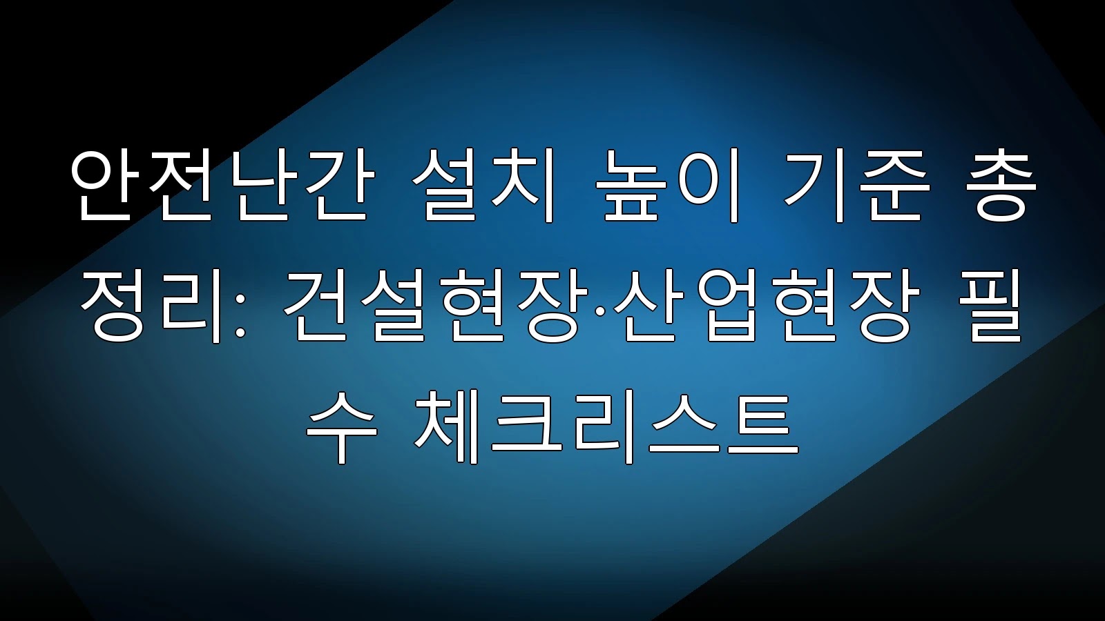 이 글의 목적은 안전난간 설치 높이 기준과 구조 요건을 현장에서 바로 적용할 수 있도록 규격, 하중, 간격, 점검 절차를 전문가 수준으로 체계화하여 제공하는 것이다.