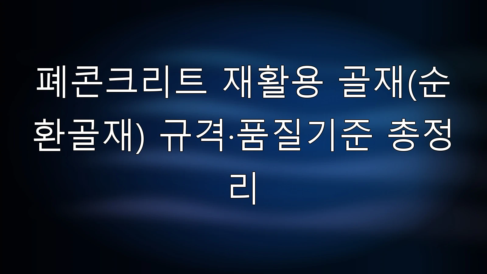이 글의 목적은 폐콘크리트에서 생산되는 재활용 골재(순환골재)를 콘크리트에 안전하게 적용하기 위해 필요한 규격, 용도별 품질기준, 시험항목, 현장 관리 포인트를 한 번에 정리하는 것이다.