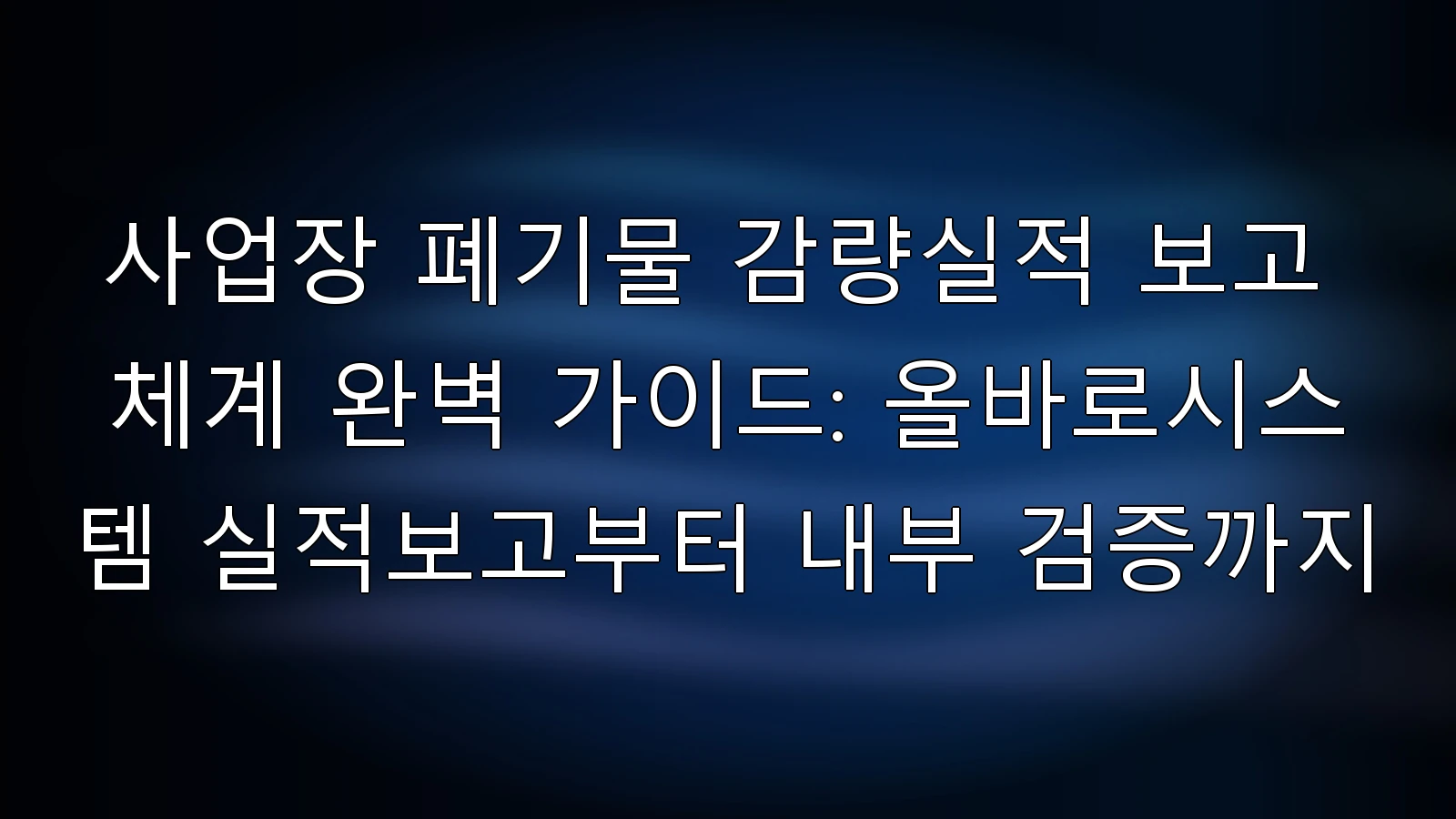 이 글의 목적은 사업장에서 수행한 폐기물 감량 활동을 “실적”으로 인정받을 수 있도록, 데이터 수집·산정·증빙·검증·제출까지의 보고 체계를 표준화하여 현장에서 바로 적용할 수 있게 하는 데 있다.
