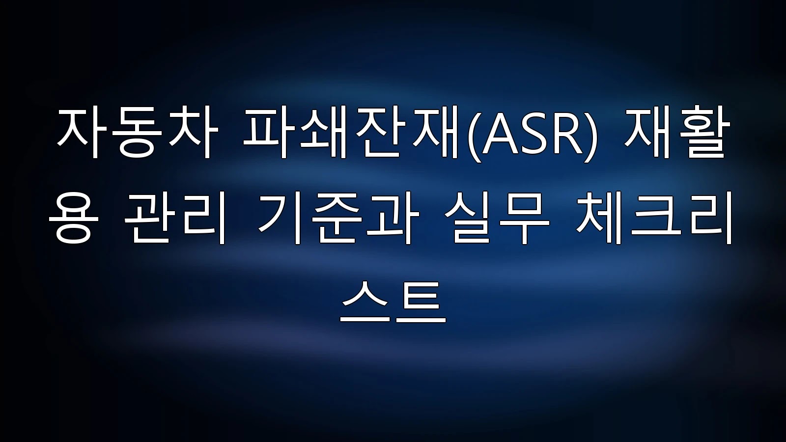 이 글의 목적은 자동차 파쇄잔재(ASR)의 발생부터 보관·운반·재활용·에너지회수까지 전 과정에서 법적 요구사항과 현장 관리 포인트를 체계적으로 정리하여 사업장 담당자가 즉시 적용할 수 있도록 돕는 데 있다.