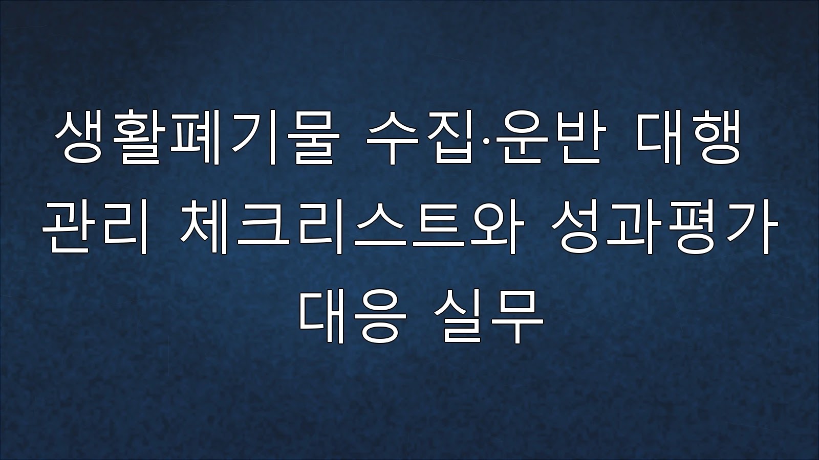 생활폐기물 수집·운반 대행 관리는 “무엇을, 어디서, 언제, 어떤 방식으로, 어떤 수준의 품질로” 수행할지를 문서로 확정하고 그 이행을 데이터로 검증하는 관리행위이다.