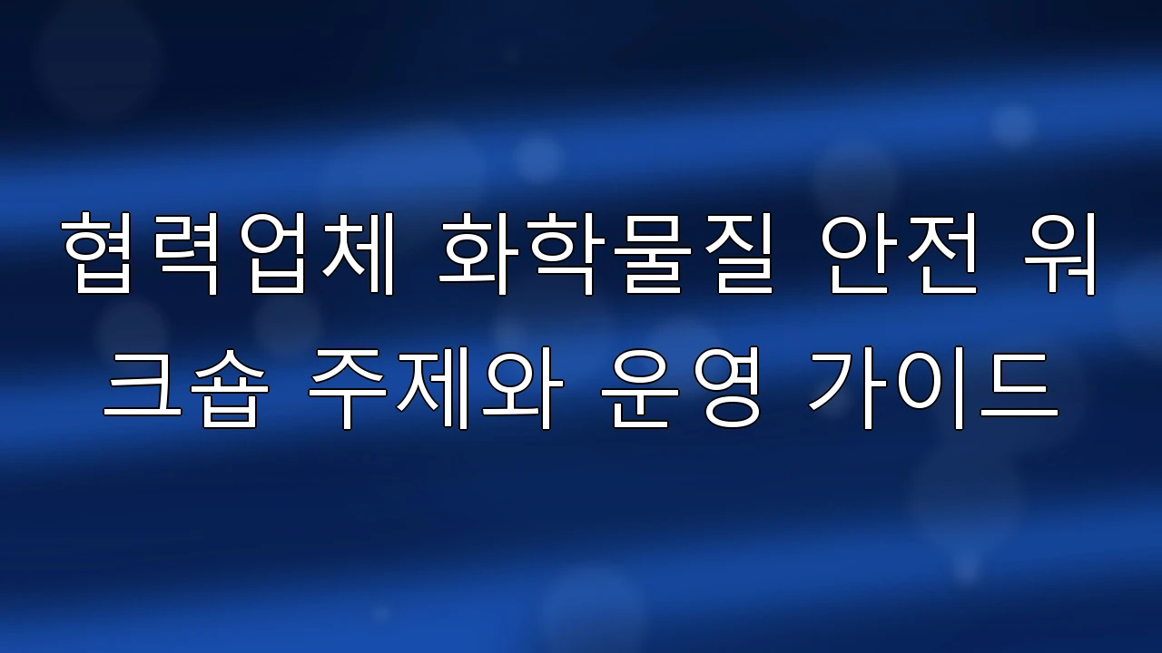 이 글의 목적은 협력업체(도급·용역·외주)와 함께 진행하는 화학물질 안전 워크숍을 현장에서 바로 운영할 수 있도록 주제 선정부터 진행 순서, 실습, 점검표, 성과관리까지 체계적으로 정리하는 것이다.