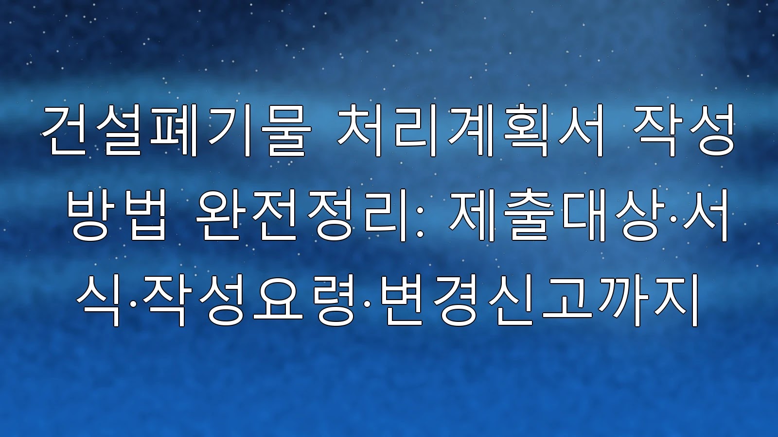 이 글의 목적은 건설폐기물 처리계획서를 법정 요구사항에 맞게 빠짐없이 작성하고, 공사 착공 전 제출부터 공사 중 변경신고까지 현장에서 바로 적용할 수 있도록 실무 기준으로 정리하는 것이다.