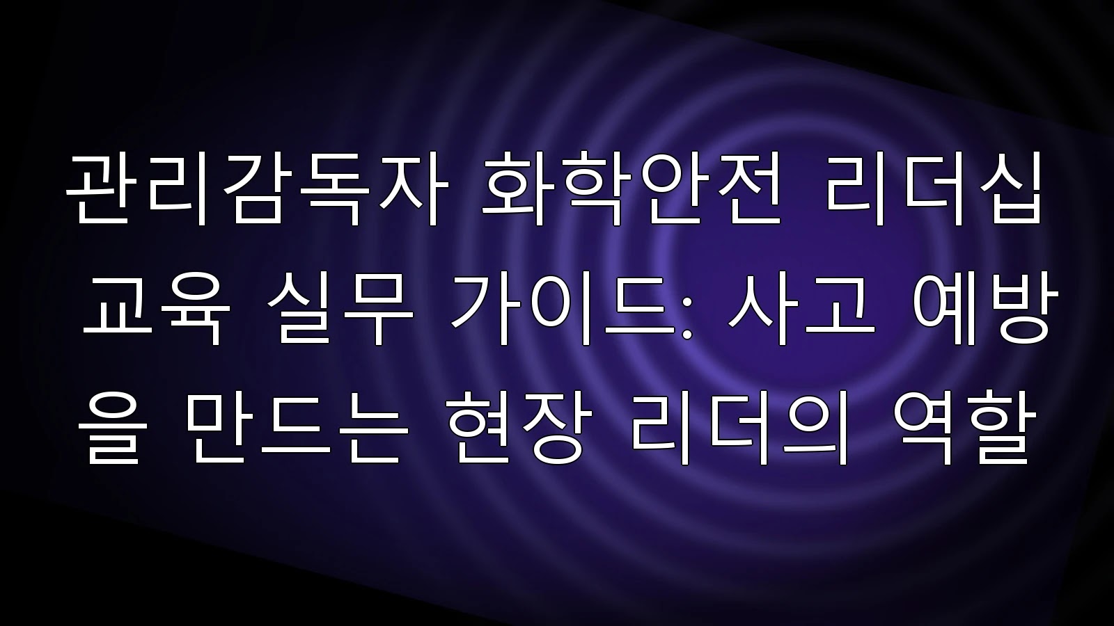 이 글의 목적은 관리감독자가 현장에서 화학물질 위험을 통제하고 구성원의 안전행동을 이끄는 리더십을 체계적으로 학습·적용할 수 있도록 교육 구성, 운영 방법, 점검 도구를 실무 중심으로 정리하는 것이다.