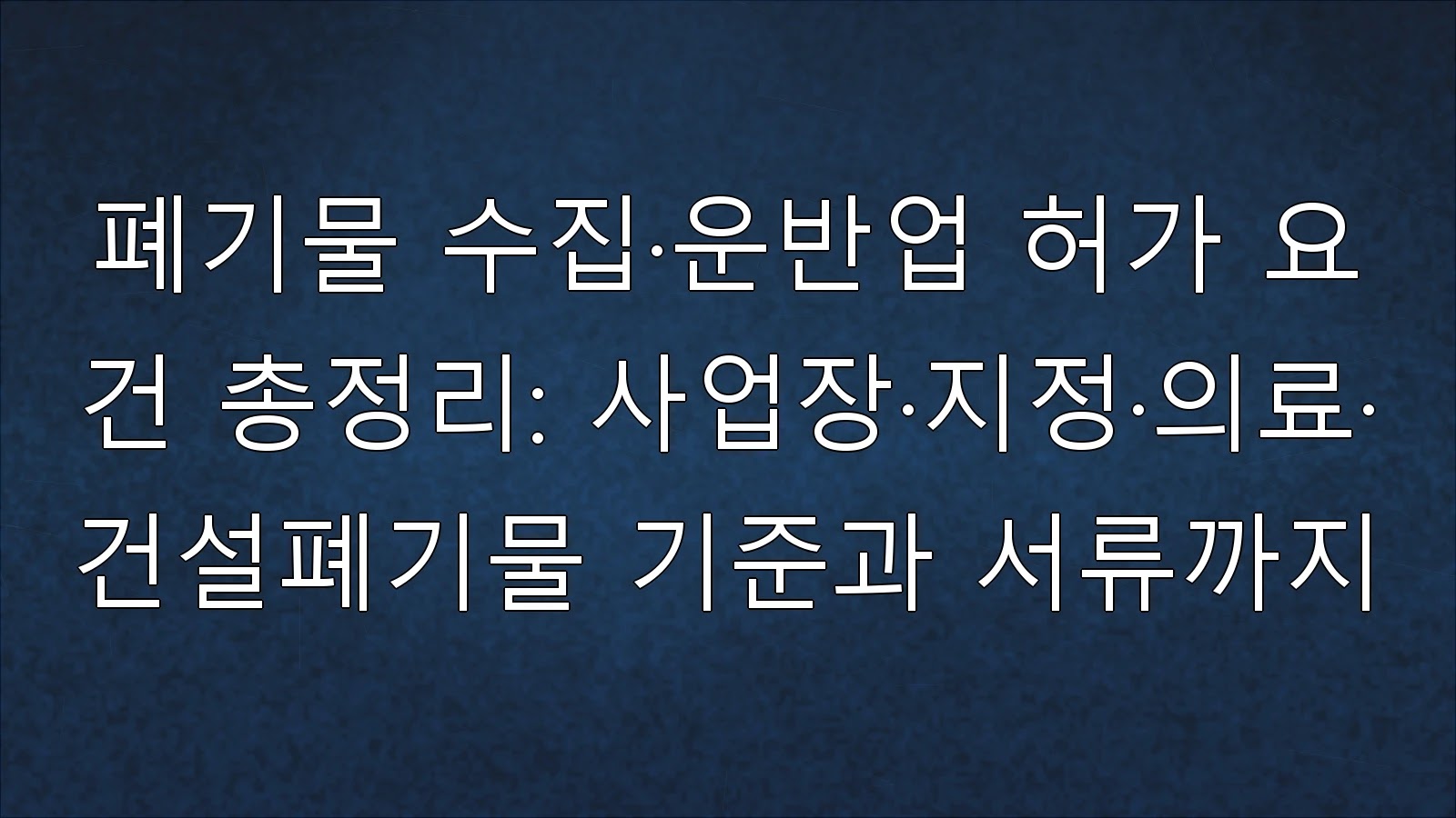 특히 사업장폐기물 중에서도 지정폐기물과 의료폐기물은 시설·기술인력 요건이 추가되며, 건설폐기물은 별도의 법령 체계에서 수집·운반업 허가기준이 정해져 있다는 점이 핵심이다.