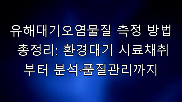 이 글의 목적은 환경대기(대기 중) 유해화학물질을 정확하게 측정하기 위해 필요한 시료채취(샘플링) 방법, 분석 장비 선택, 품질관리(QA/QC) 포인트를 실무자가 바로 적용할 수 있도록 체계적으로 정리하는 데에 있다.