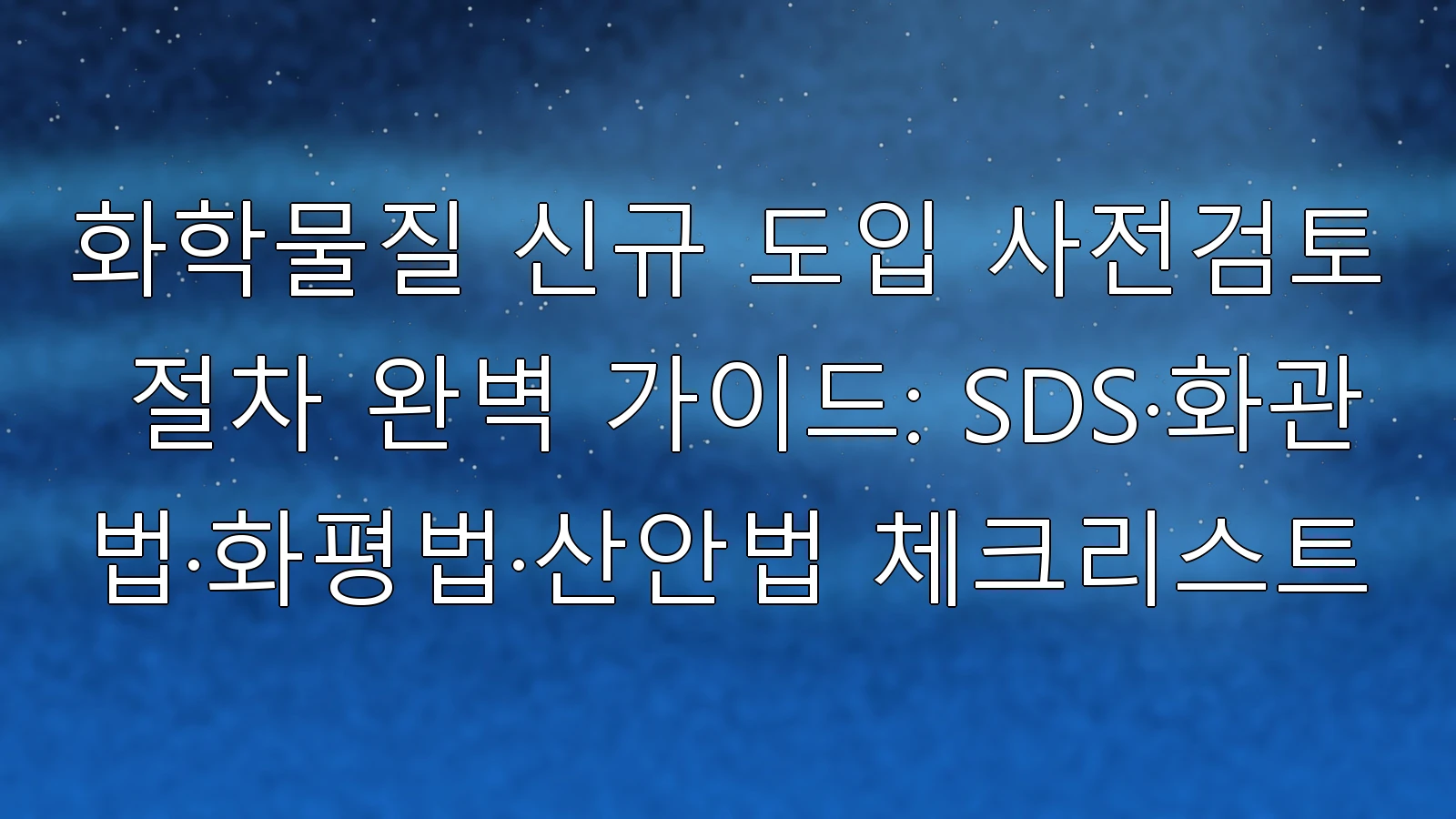 이 글의 목적은 사업장에서 화학물질을 신규 도입하기 전에 반드시 수행해야 하는 사전검토 절차를 표준화하여, 법규 위반과 화학사고를 예방하고 구매·공정·안전·환경 부서가 같은 기준으로 의사결정할 수 있도록 돕는 것이다.