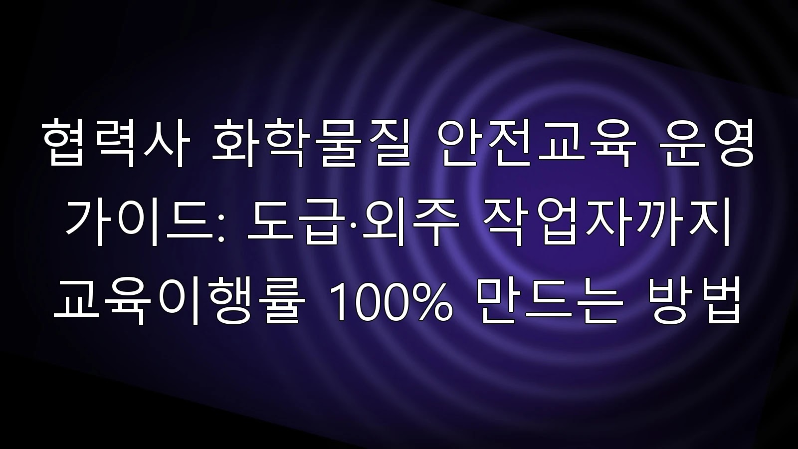 이 글의 목적은 협력업체 작업자가 화학물질을 취급하거나 화학물질 노출 가능 공정에 투입될 때, 원청과 협력사가 역할을 분담하여 교육을 설계·실시·기록·평가까지 일관되게 운영하는 실무 체계를 제시하는 것이다.