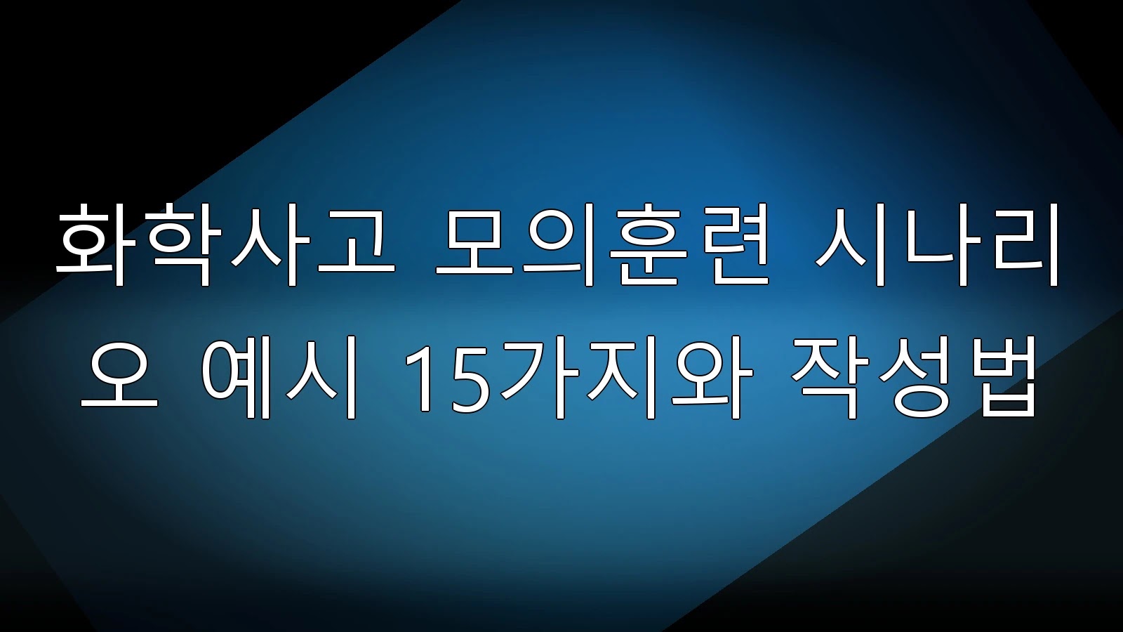 이 글의 목적은 사업장·연구소·물류창고·공공기관에서 화학사고 대비 모의훈련을 설계할 때 바로 사용할 수 있는 시나리오 주제, 상황전개 방식, 평가기준, 훈련운영 팁을 체계적으로 제공하는 데 있다.