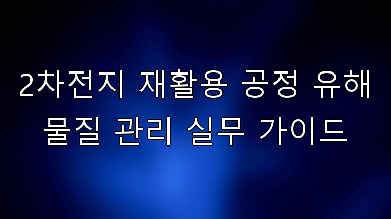 이 글의 목적은 2차전지 재활용(폐배터리·블랙매스·습식/건식 제련) 공정에서 발생하는 유해물질을 공정 단계별로 식별하고, 저장·취급·노출저감·환경배출·비상대응까지 현장에서 바로 적용 가능한 관리체계를 정리하는 데 있다.