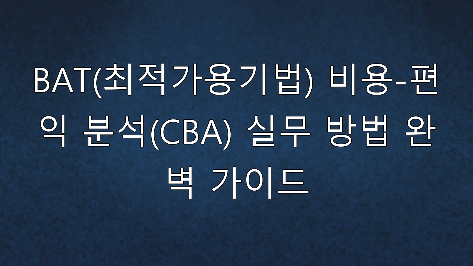 이 글의 목적은 통합환경관리 인허가와 환경투자 의사결정에서 요구되는 BAT 비용-편익 분석 방법을 실무자가 재현 가능하게 수행하도록 절차, 산식, 데이터 요건, 보고서 구성까지 체계적으로 정리하는 데 있다.