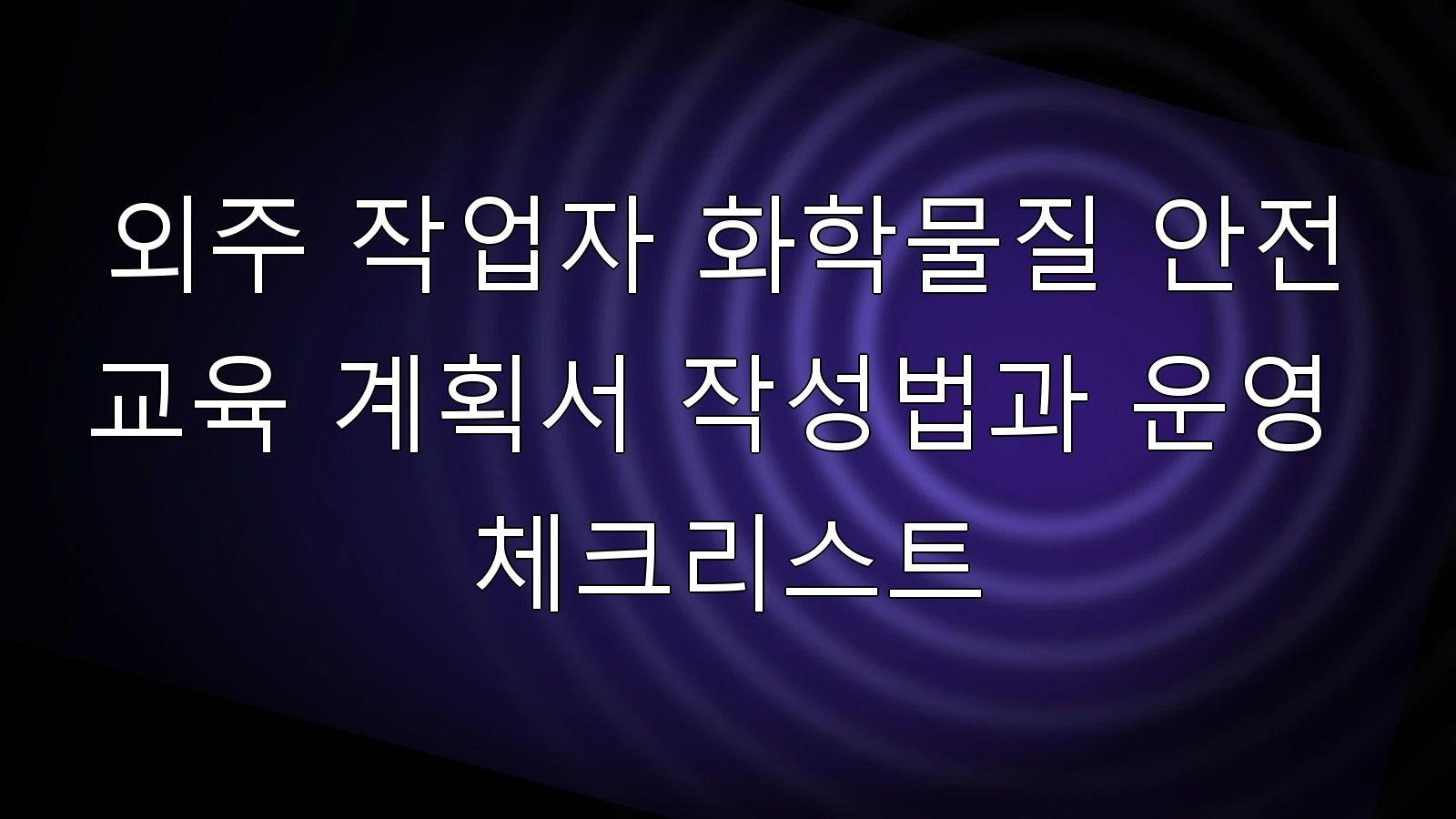 이 글의 목적은 외주 작업자(협력업체·도급·하도급)가 사업장 내 화학물질을 안전하게 취급하도록 교육을 설계하고 실행하는 방법을 계획서 형태로 정리하여 현장에서 즉시 적용할 수 있도록 돕는 것이다.