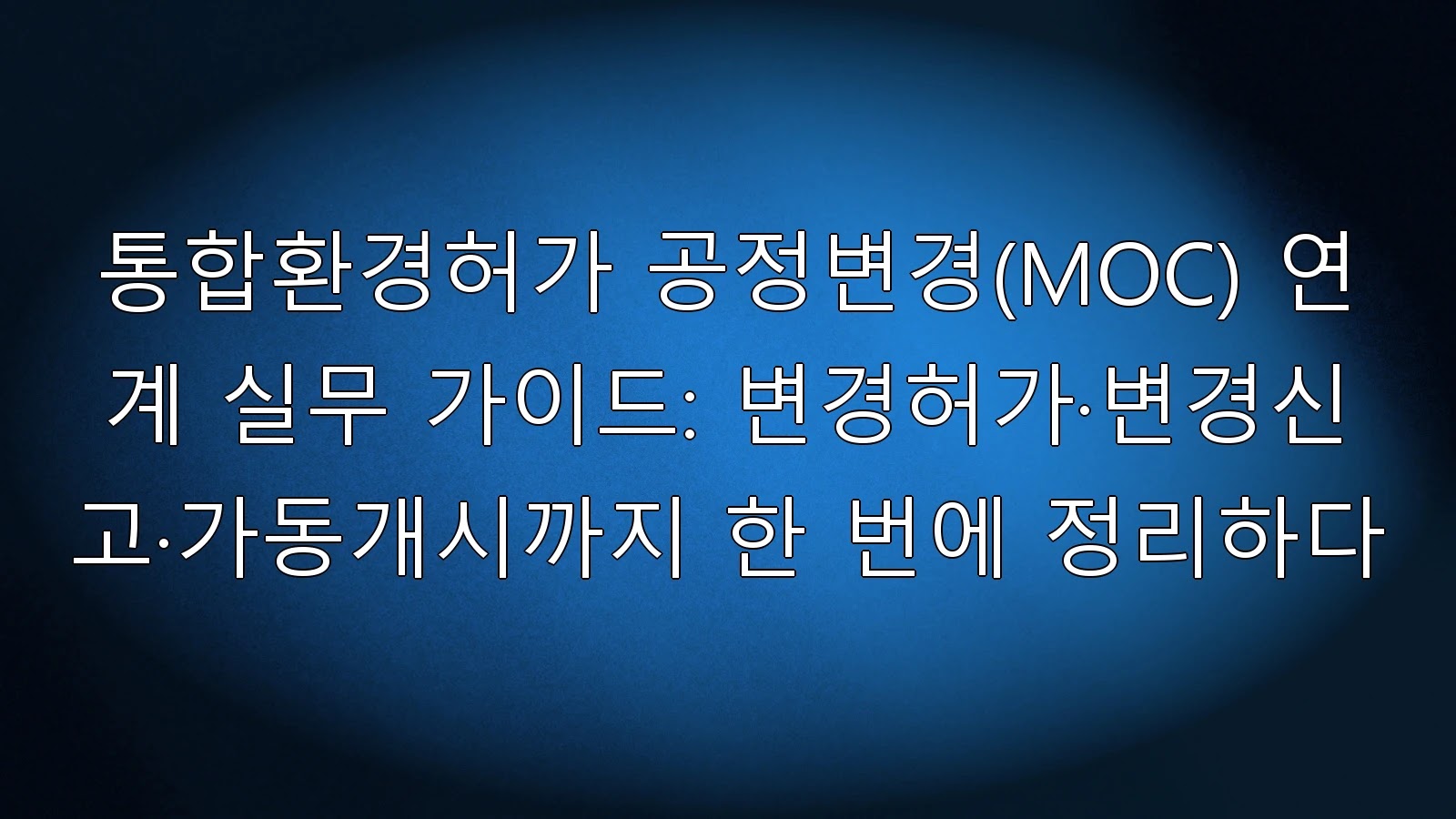 이 글의 목적은 통합환경허가 사업장에서 발생하는 공정변경을 MOC(Management of Change) 절차와 직접 연계하여 변경허가·변경신고·가동개시 신고까지 누락 없이 관리하는 실행 체계를 제시하는 것이다.