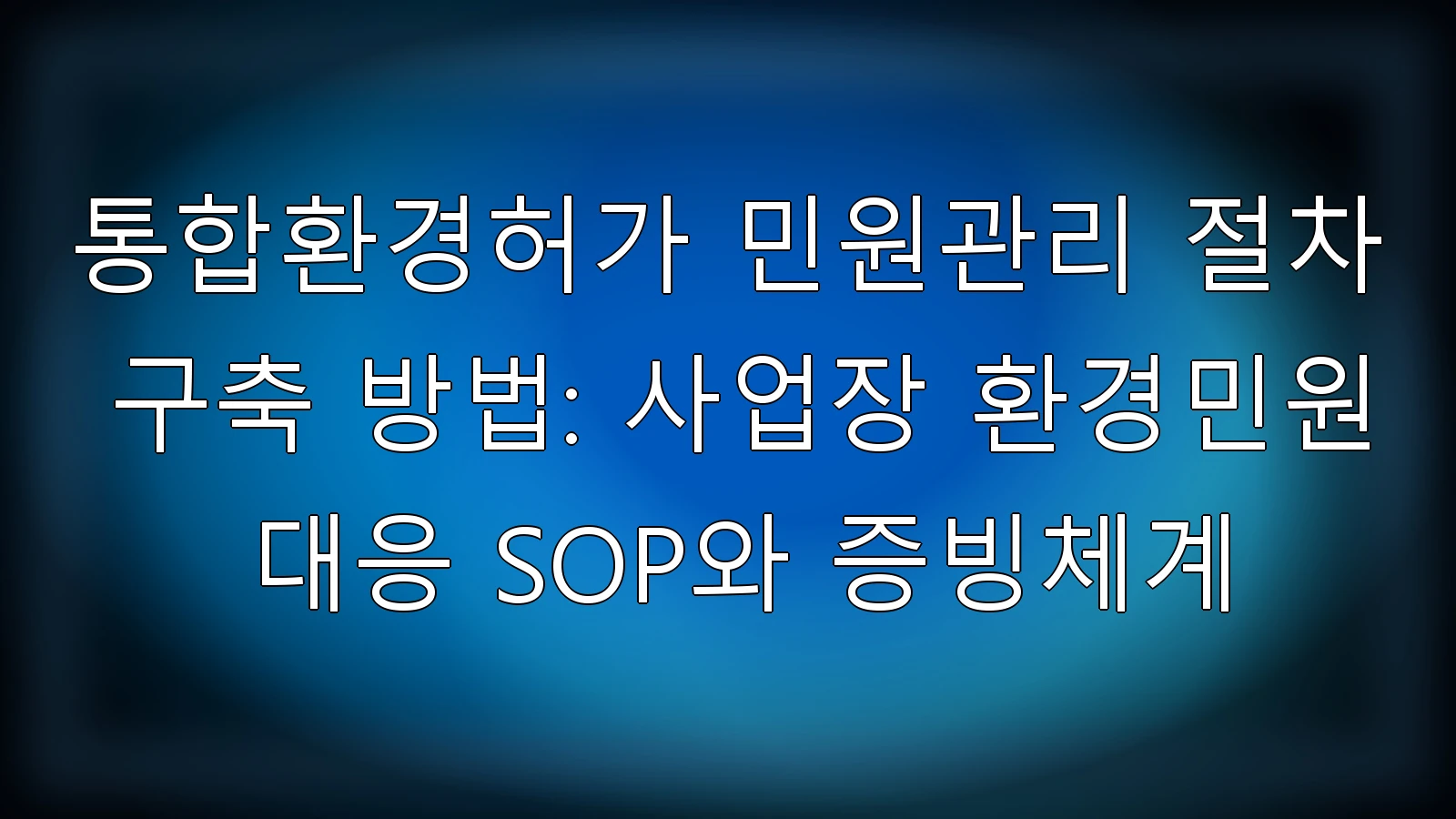 이 글의 목적은 통합환경관리법 적용 사업장에서 환경민원 대응을 표준화하여 처리기한 준수, 재발방지, 대외 신뢰 확보, 허가조건 이행 증빙까지 한 번에 만족하는 민원관리 절차를 구축하도록 돕는 것이다.