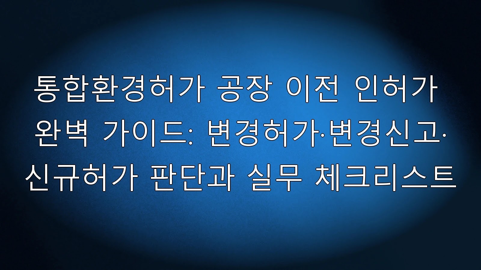 이 글의 목적은 통합관리사업장이 공장 이전을 추진할 때 통합환경허가(통합허가) 관점에서 무엇을 언제까지 준비해야 하는지, 변경허가·변경신고·신규허가의 판단 기준과 문서·일정·리스크를 실무자가 그대로 적용할 수 있도록 체계적으로 정리하는 데 있다.